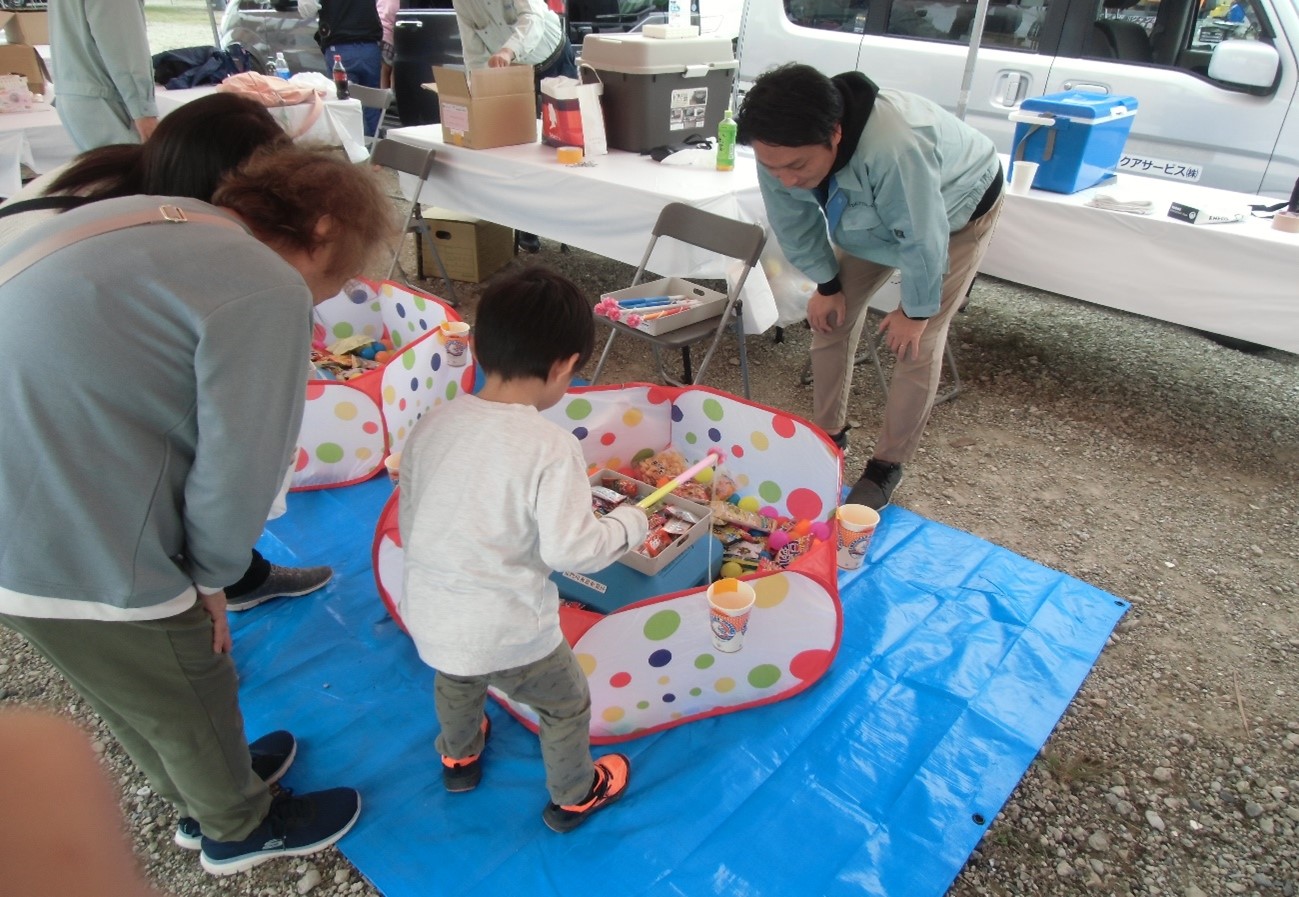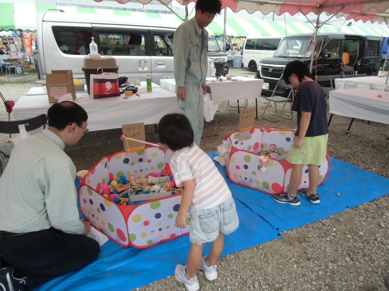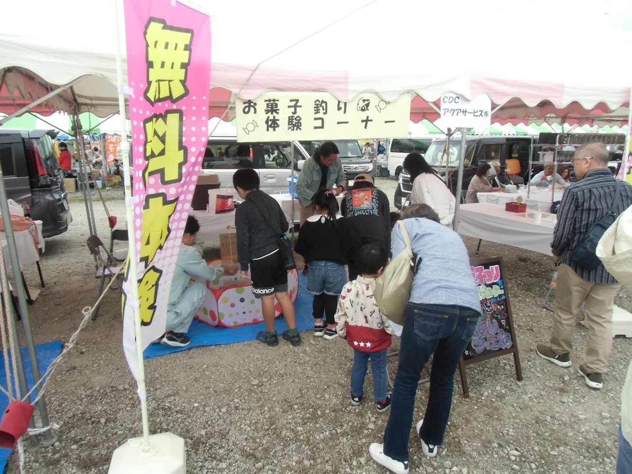 今回の模擬店は小さなお子様でも楽しめるよう「お菓子釣り体験」としました。200人以上のお子様が来店し、笑顔になって楽しんでいる様子が伺えました。
