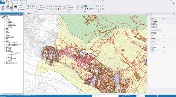 GISソフトを使用し、台帳作成業務を行っております。また、既存のShapeデータを元にご要望の作図を行ったり、属性を付与したりと多岐に渡り対応しています。